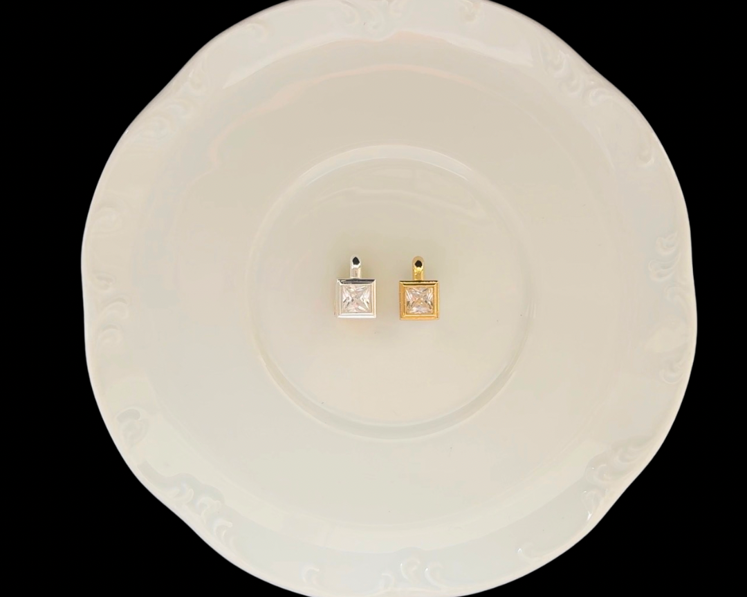 Candy for your ear, a simplistic square CZ on a drop style earring