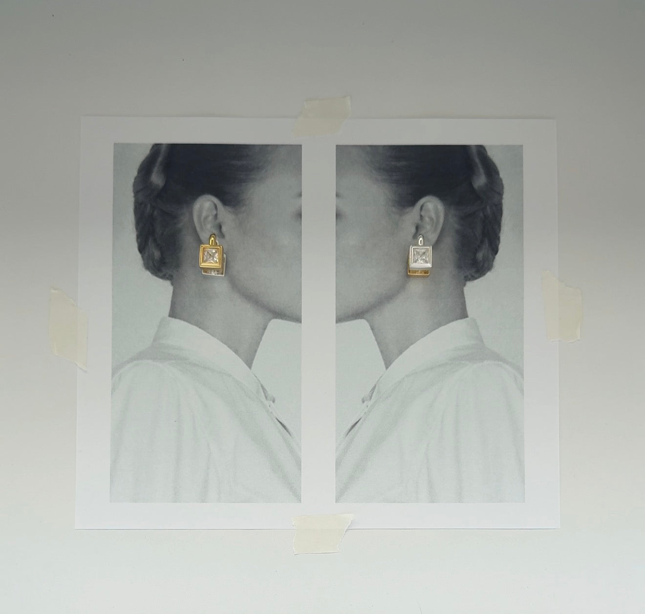 A reversible earring. One side silver. One side gold. Giving you two earrings in one.
