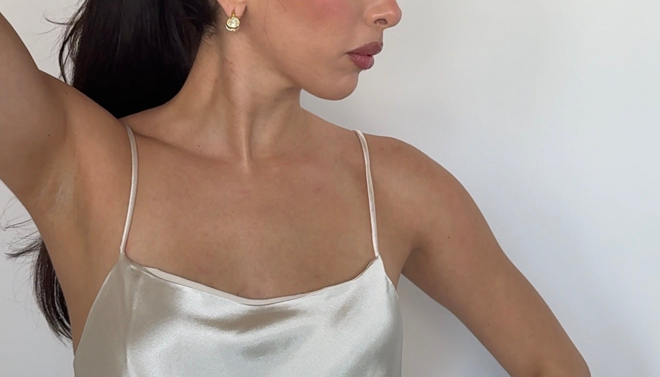 A reversible earring. One side silver. One side gold. Giving you two earrings in one.