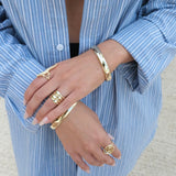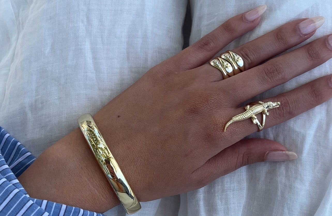 The materials used in our products can be exposed to a normal amount of water/sweat but are not waterproof. For the longevity of pieces it is recommended to remove each piece prior to showering, swimming and exercising and avoid contact with cosmetics, deodorants, perfumes, lotions and fake tan. Overtime, even the highest quality plated jewelry will need to be re plated as plating natural wears down overtime.