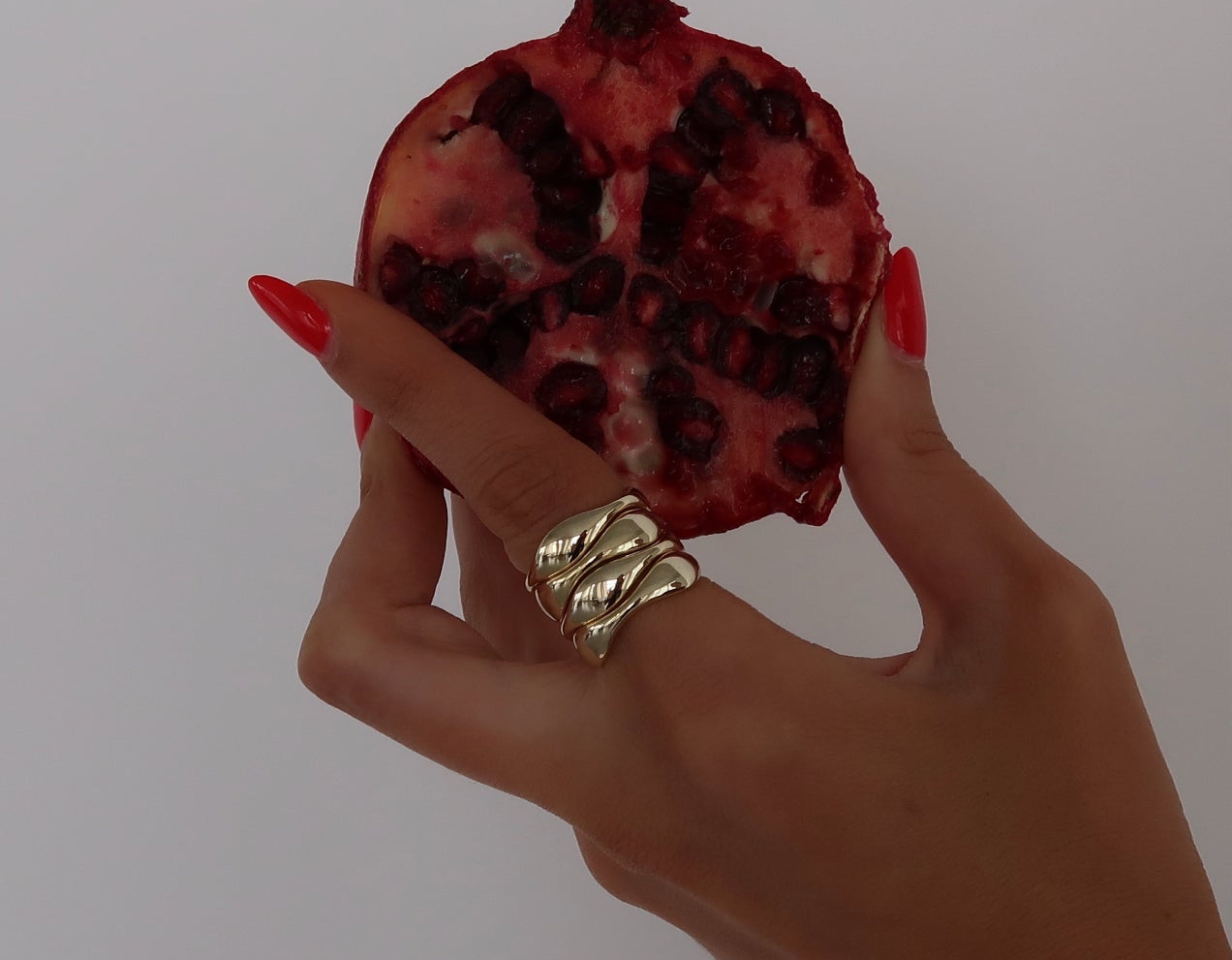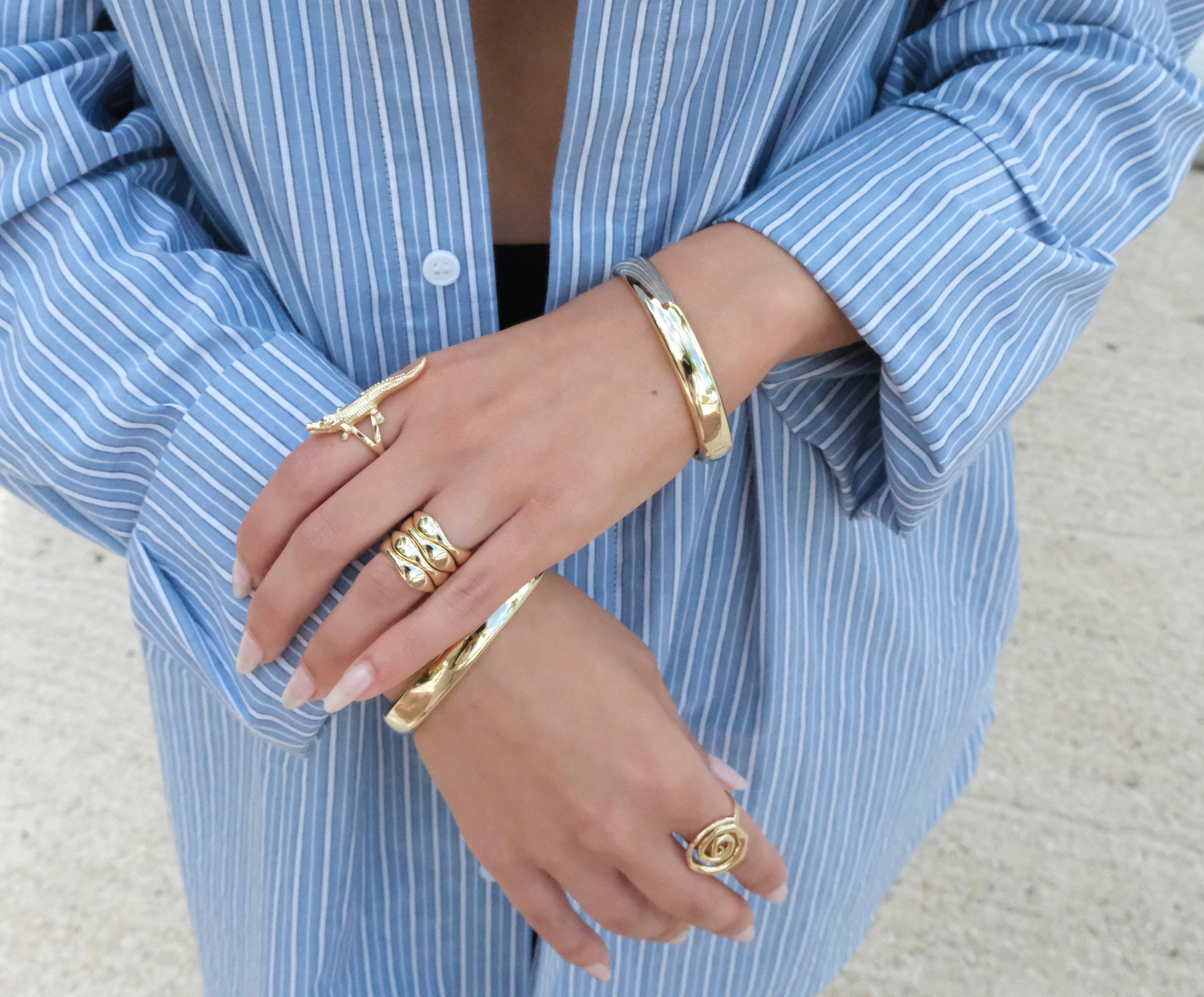 A sculptural ring that perfectly stacks, and are perfectly made for each other